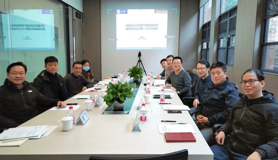 2022年1月24日,《道路交通定向聲預(yù)警系統(tǒng)》、《教室均勻聲場擴聲陣列系統(tǒng)》(即教學(xué)擴音器)編制組成立暨第一次工作會議在重慶大學(xué)設(shè)計創(chuàng)意產(chǎn)業(yè)園順利召開。