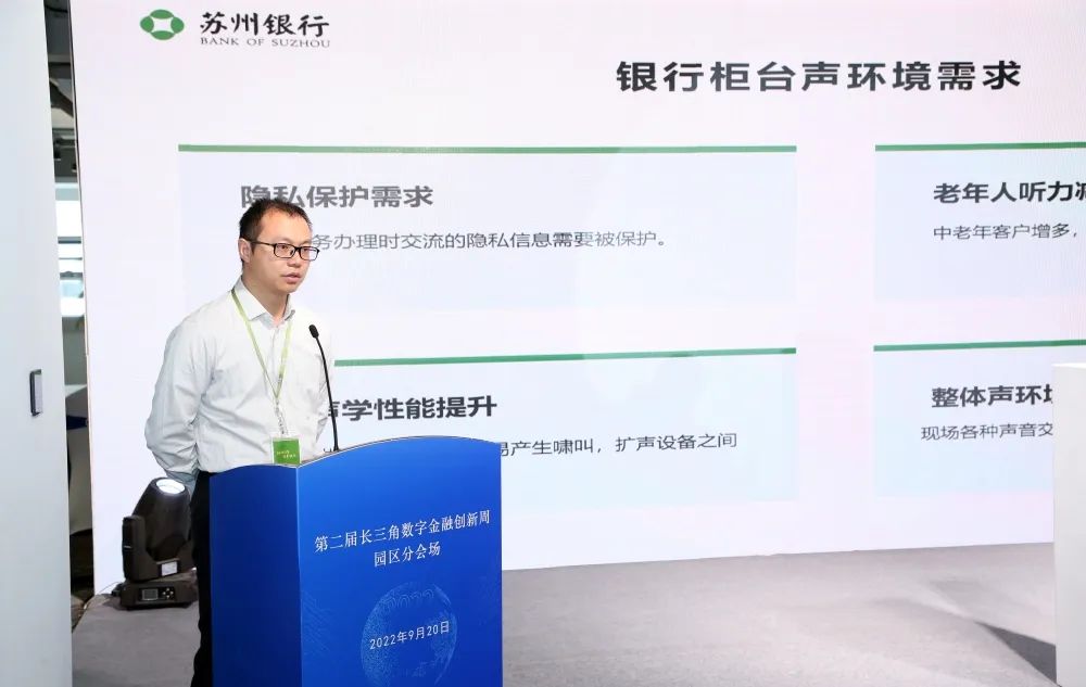 在產(chǎn)品發(fā)布環(huán)節(jié),蘇州銀行副行長張小玉和清聽聲學技術(shù)總監(jiān)匡正共同為“智能防干預柜臺對講系統(tǒng)產(chǎn)品”啟動發(fā)布按鈕,蘇州銀行信息科技部總經(jīng)理助理曾亮為與會嘉賓詳細介紹了產(chǎn)品功能與技術(shù)優(yōu)勢。