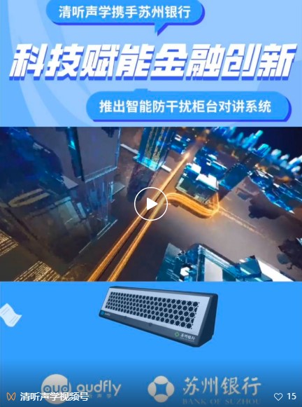 清聽聲學和蘇州銀行自2021年建立“聯(lián)合實驗室”以來,持續(xù)圍繞智慧金融、智慧柜臺、音頻適老化升級全面開展深度合作,積極探索“聲學+金融”一系列新技術(shù)研究成果落地轉(zhuǎn)化。除業(yè)內(nèi)首創(chuàng)基于定向發(fā)聲技術(shù)的智能防干擾柜臺對講系統(tǒng)外,未來將從智能交互和用戶隱私安全角度著手,結(jié)合清聽聲學最新一代屏幕定向發(fā)聲技術(shù),集成現(xiàn)有顯示屏作為發(fā)聲單元,提升語音清晰度,構(gòu)建柜臺對講私域聲場,符合銀行業(yè)音視頻一體化要求的先進音頻系統(tǒng),不斷提升銀行業(yè)科技化、智能化服務(wù)水平和能力。