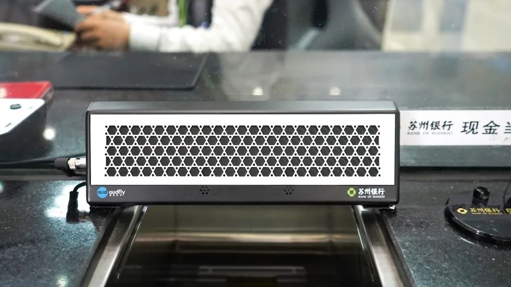 本次清聽聲學(xué)攜手蘇州銀行亮相金博會,雙方聯(lián)合展示了智能防干擾柜臺對講系統(tǒng),該系統(tǒng)由蘇州銀行和清聽聲學(xué)聯(lián)合實驗室合作開發(fā),基于清聽聲學(xué)核心的定向發(fā)聲技術(shù),借助定向聲控、回聲消除和噪聲動態(tài)抑制技術(shù),利用超聲波指向傳播特性及空氣非線性作用,實現(xiàn)可聽聲的指向性傳播效果。
