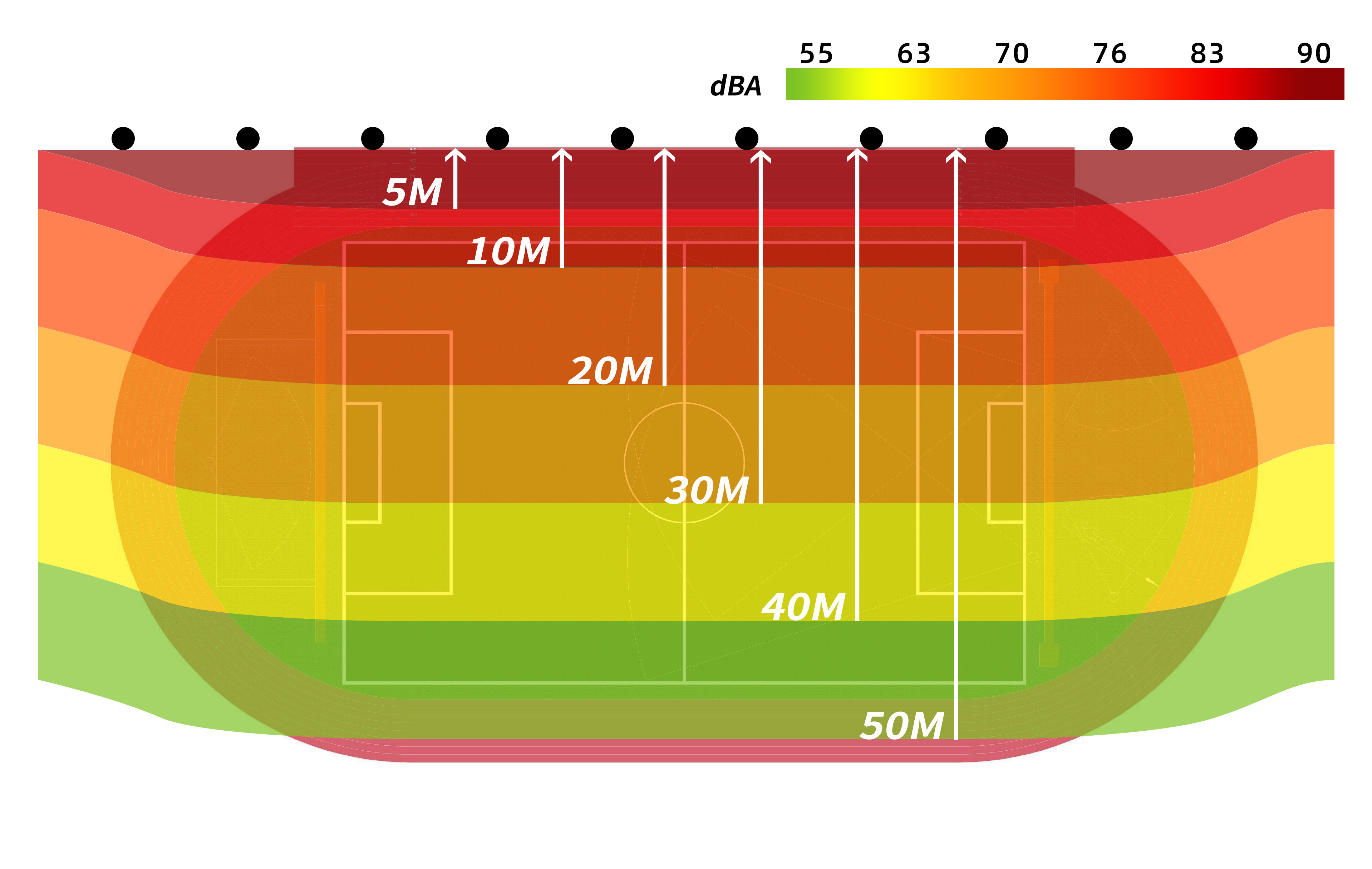 操場聲場對周邊居民樓干擾降低至環保值以下。