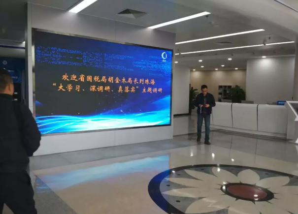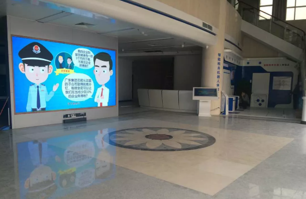 珠海國稅辦事大廳,大廳天花板上集成多個聚音寶產品。聚音寶從大盤上方天花板把聲音投送到地面圓形圖案內,參觀人員及辦稅人員走到圓形圖案聆聽大屏內容,走出圓形區域則是安靜的辦稅場所。聚音寶定向聲解決方案將聲音控制在一定角度,使參觀區與辦稅場所兩個聲空間,相互獨立,互不干擾。