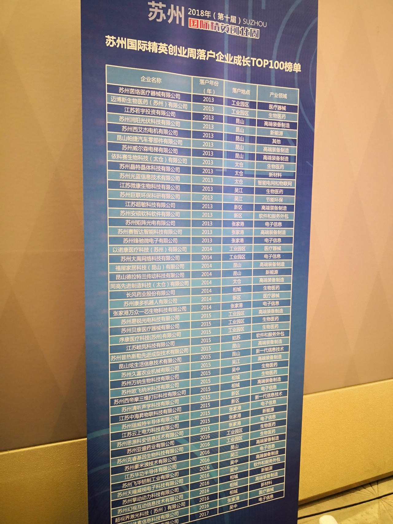 “蘇州國際精英創業周落戶企業成長TOP100榜單”