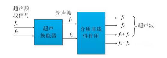 基于超聲的聲頻定向傳播技術(shù)是一種可使聲音以波束在一定方向傳播的新聲源技術(shù),其基本原理是將可聽聲音信號(hào)調(diào)制到超聲載波信號(hào)之上,并由超聲換能器發(fā)射到空氣中,不同頻率的超聲波在空氣中傳播的過程中,由于空氣的非線性聲學(xué)效應(yīng),這些信號(hào)會(huì)發(fā)生交互作用和自解調(diào),進(jìn)而產(chǎn)生頻率為原超聲頻率之和(和頻)與頻率之差(差頻)的新聲波。若超聲波選取合適,那么差頻聲波則可落在可聽聲區(qū)域。這樣,借助超聲波本身的高指向性,實(shí)現(xiàn)了聲音定向傳播的過程。