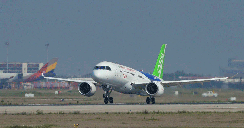 我國具有完全自主知識(shí)產(chǎn)權(quán)的新一代大型噴氣式客機(jī)C919首飛成功