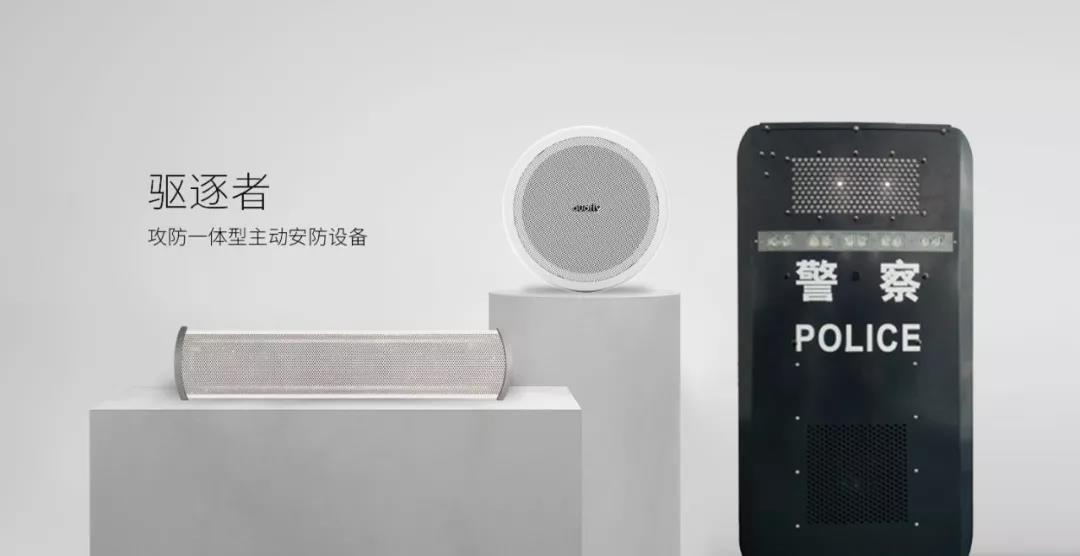 目前,驅(qū)逐者分音箱和盾牌兩種形態(tài);音箱形態(tài)的驅(qū)逐者又分EV-L1和EV-R1兩種型號(hào),適配掛壁和吸頂安裝,場(chǎng)景契合度極高;由于外觀似音箱,具有一定的隱蔽性。而盾牌則融合了一系列聲光信號(hào)技術(shù),更適用于軍用警戒攻防。