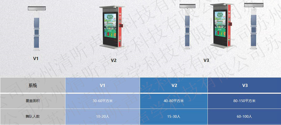 要找適合跳廣場舞的有源定向音箱可以直接在百度里面搜清聽聲學智慧廣場舞系統就可以了,你就能看到清聽聲學的3款產品了-V1、V2、V3,3款產品融合的技術都是一樣的-定向聲技術,區別在于V2、V3帶大屏幕,是觸摸屏的,功能也更多:可以用來社區宣傳、報警、安防知識普及、有急救包、滅火器等等其他功能,V2、V3覆蓋的面積好和人數也是呈逐漸遞增的效果,V1是個簡單的廣場舞定向音響,沒有其他功能,可以根據自己的實際需求來選擇適合自己的型號。