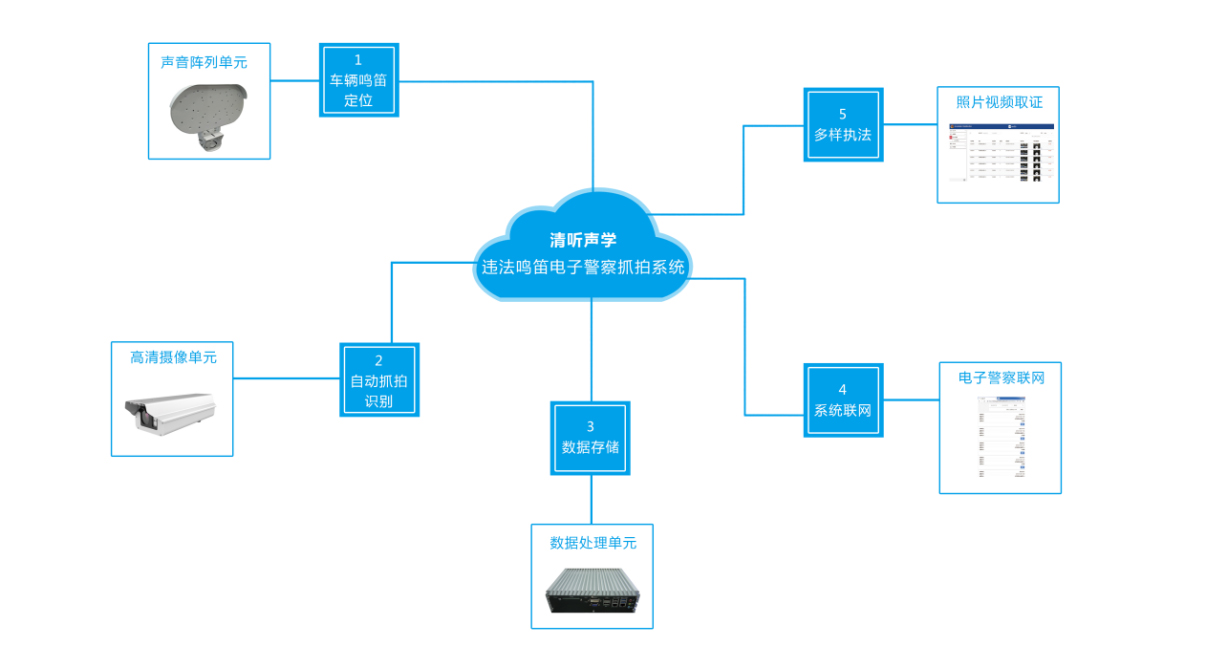 鳴笛抓拍系統行業解決方案旨在用聲學高新技術實現道路交通執法的多元化與高效化,結合交警現有的違法違章監測系統,融合清聽聲學鳴笛抓拍系統的高科技手段,給治理違法鳴笛提供權威科學的依據,助力交警快速、高效執法。